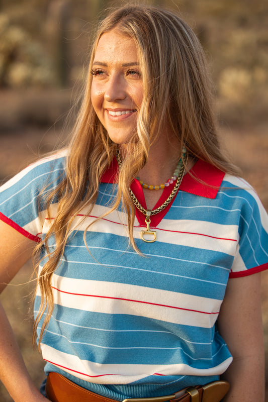 Red & Blue Striped Knit Polo