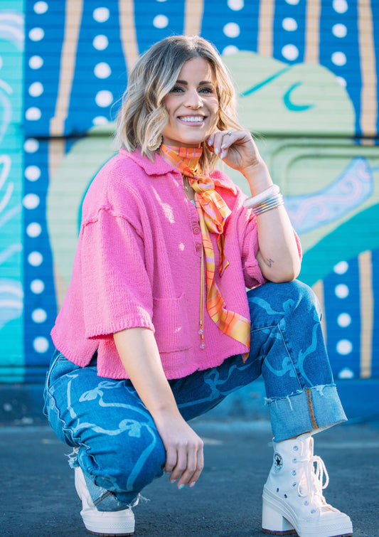Candy Pink Cropped Sweater