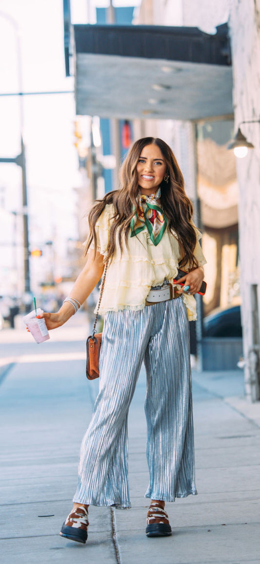 Silver Metallic Plisse Pant
