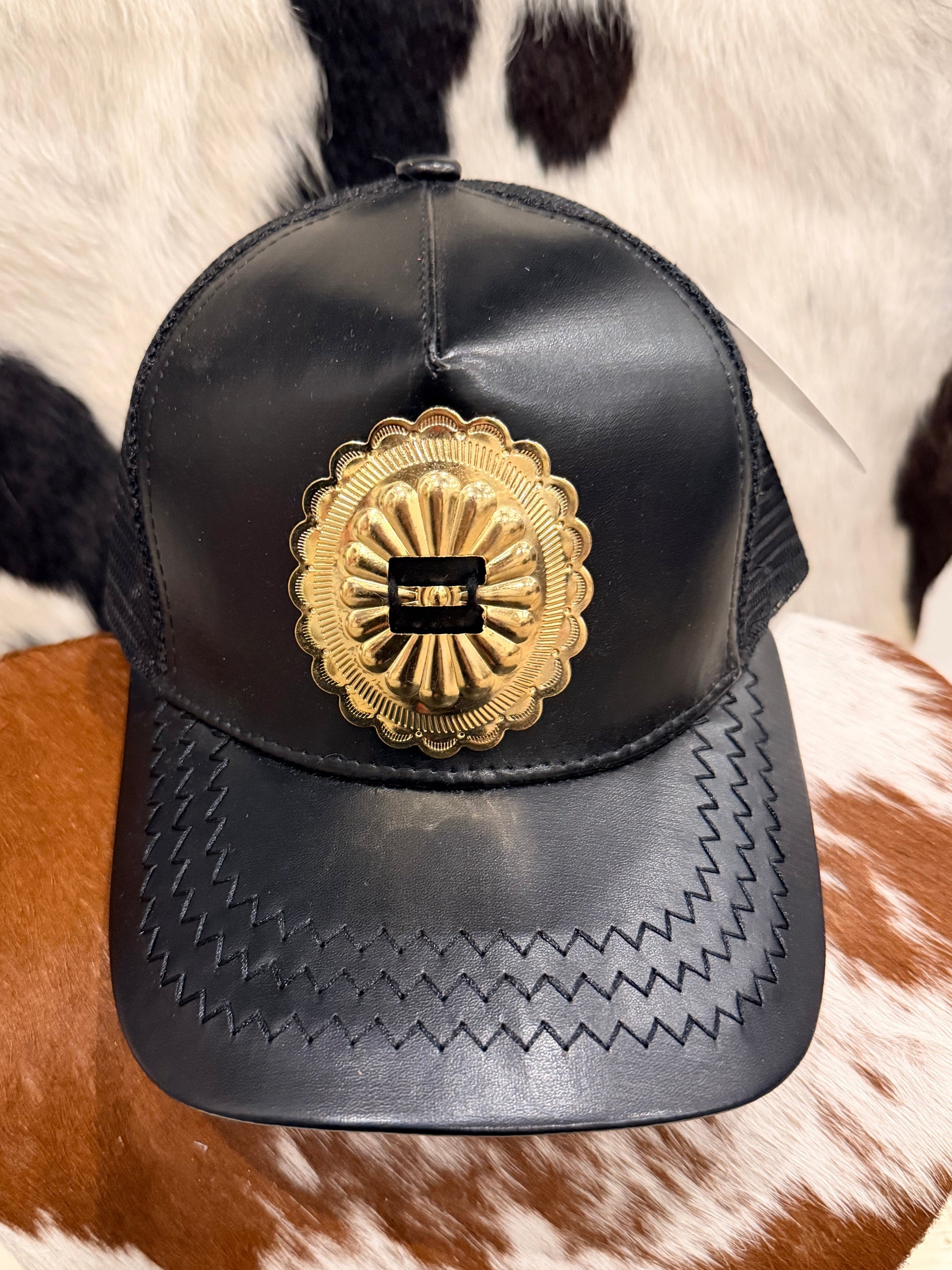 Black Leather Concho Hat
