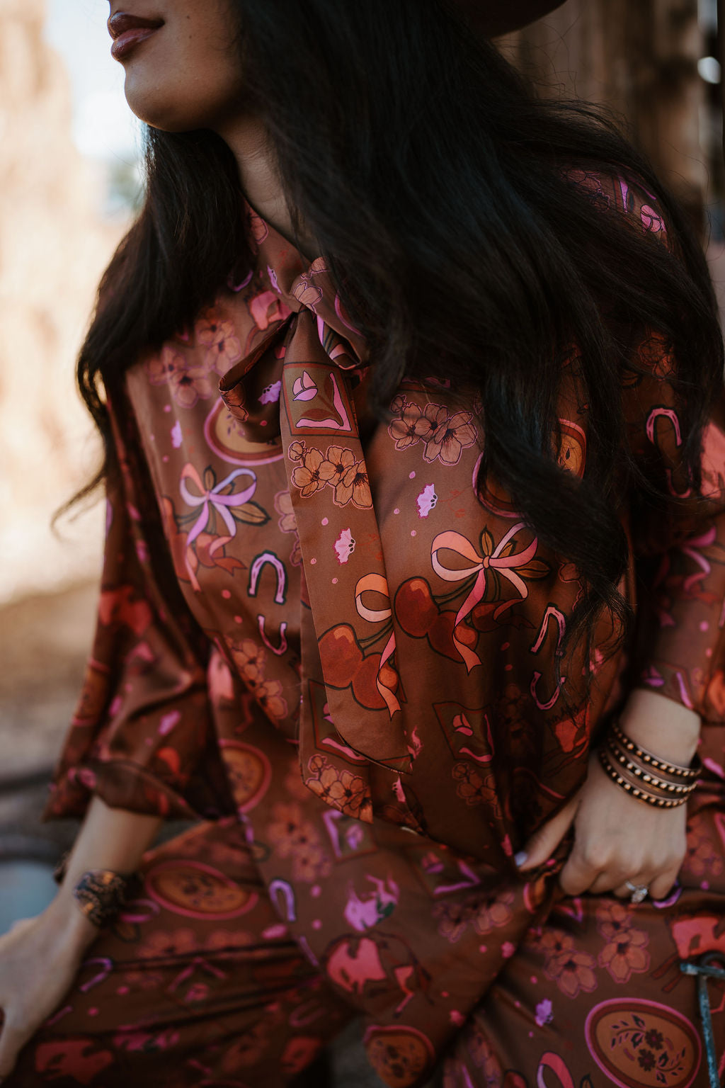 Top- tie neck detail with slits on the sides.