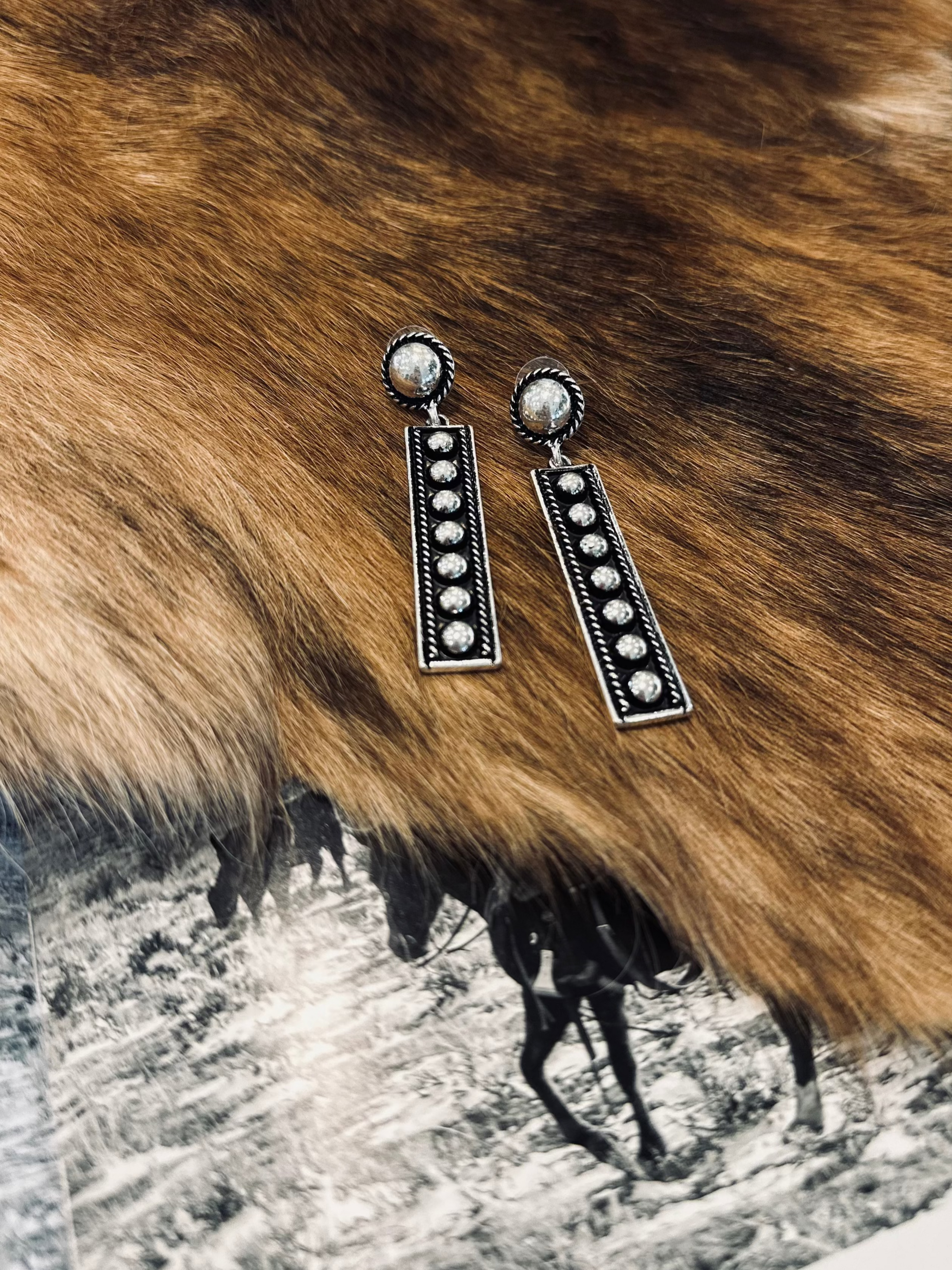 Silver Bubble Rectangle Earrings
